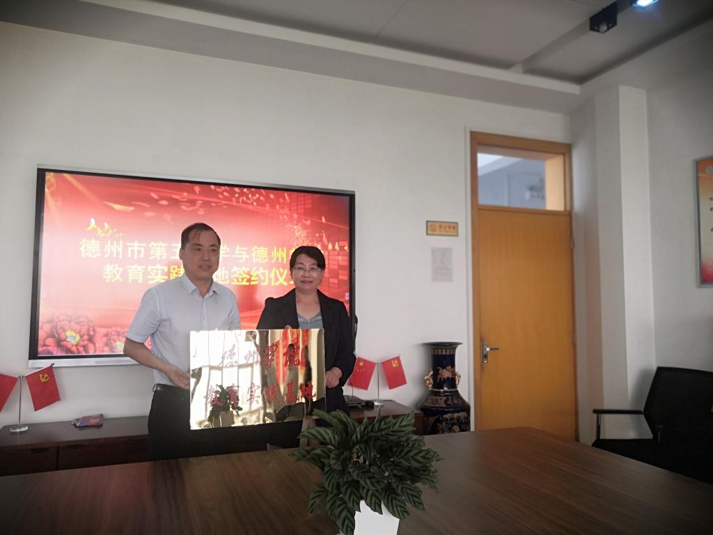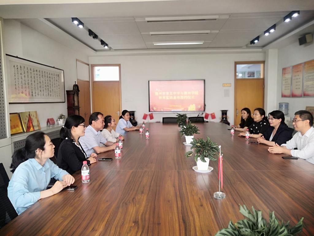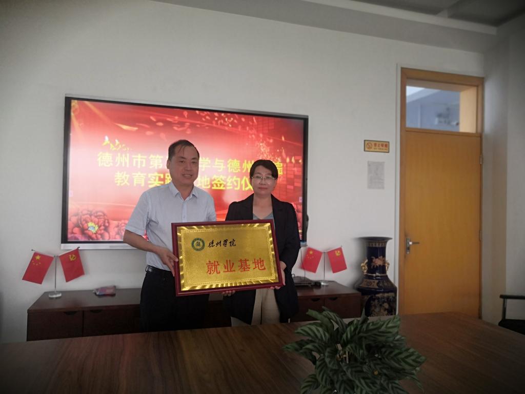 德州市第五中学的校长丁淑敏、副校长王秀红,教务处主任杜长德、副主任赵燕等领导老师与我院领导老师就今后的合作发展进行了热烈深入的探讨。德州市第五中学和我院的领导签订了《德州学院教育实践基地协议书》和《德州学院就业基地协议书》,并举行授牌仪式。