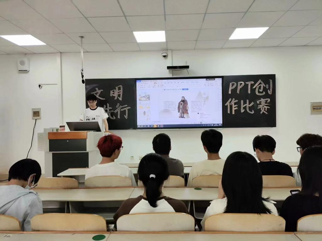 活动伊始,由主持人宣讲举办本次比赛的目的和要求。随后,参赛的同学们展示自己的比赛作品,对自己的作品做简单介绍并阐述其中所蕴含的意义,体现了同学们内心对文明礼仪的理解。通过PPT的形式,向同学们普及文明知识,倡导文明行为,让文明理念深入人心。活动结束后,同学们清理了场地内的垃圾,并有序退场。