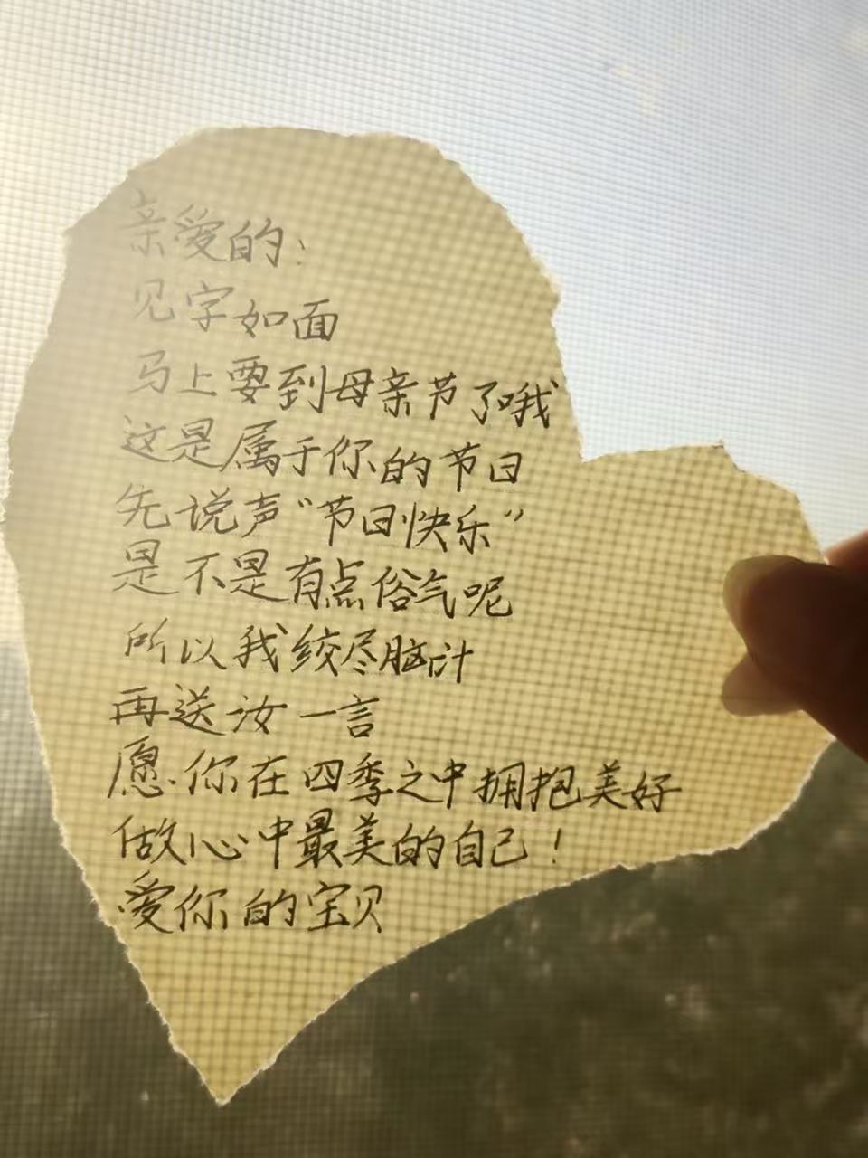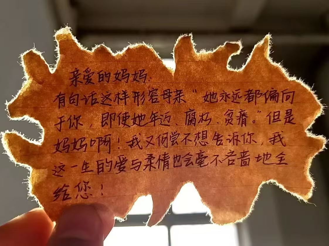 本次活动通过线上举行,我们积极鼓励大家写下自己对于妈妈想说的话,让同学们通过用手写信的方式来表达对母亲的爱。同学们在纸上写下对母亲想说的话,并将纸制作成了不规则的形状,透过光线形成了美丽的剪影,同学们用手机记录下照片,最后通过线上上传。
