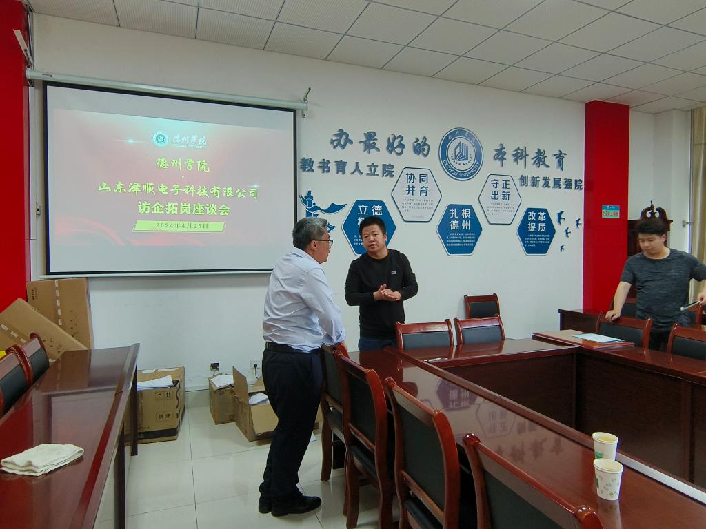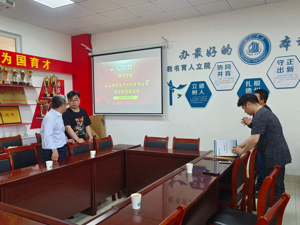 在此次“访企拓岗”活动中,双方开展了交流座谈会,在对企业的发展方向、岗位需求等方面进行了深入讲解。双方领导进行交流,了解公司的特点以及主要业务,有助于同学们更好的了解就业岗位,提高就业质量。数学与大数据学院负责人表示,我院将以此次“访企拓岗”座谈会为契机,拓宽延伸与山东诚合节能科技有限公司、山东泽顺电子科技有限公司的深度合作,尤其在高质量实习就业等方面,不断提升双方合作质量。