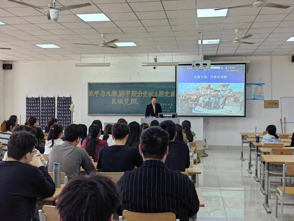为贯彻落实习近平新时代中国特色社会主义思想和党的二十大精神,加强党性修养锤炼,提高党员发展质量,数学与大数据学院分党校于4月16日在明理楼0255开展了主题党课“民族觉醒”。本次讲座由学校关工委副主任、原科研处处长、山东省作家协会会员、中国当代文学研究会会员胡俊海教授主讲,我院第36期入党积极分子培训班学员参加。