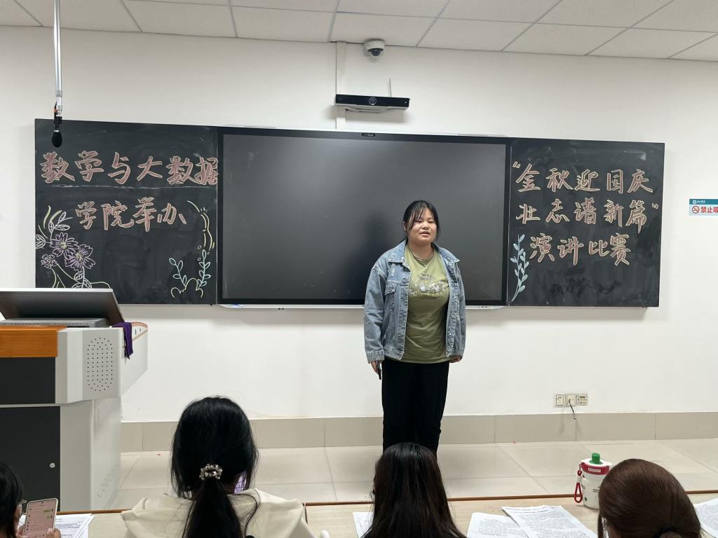 为弘扬爱国主义情感,展示新时代的精神风貌和奋斗姿态,提高同学们的演讲水平和表达能力,促进个人综合素质的提升。数学与大数据学院于9月27日在求真楼0311举办“金秋迎国庆,壮志谱新篇”演讲比赛。