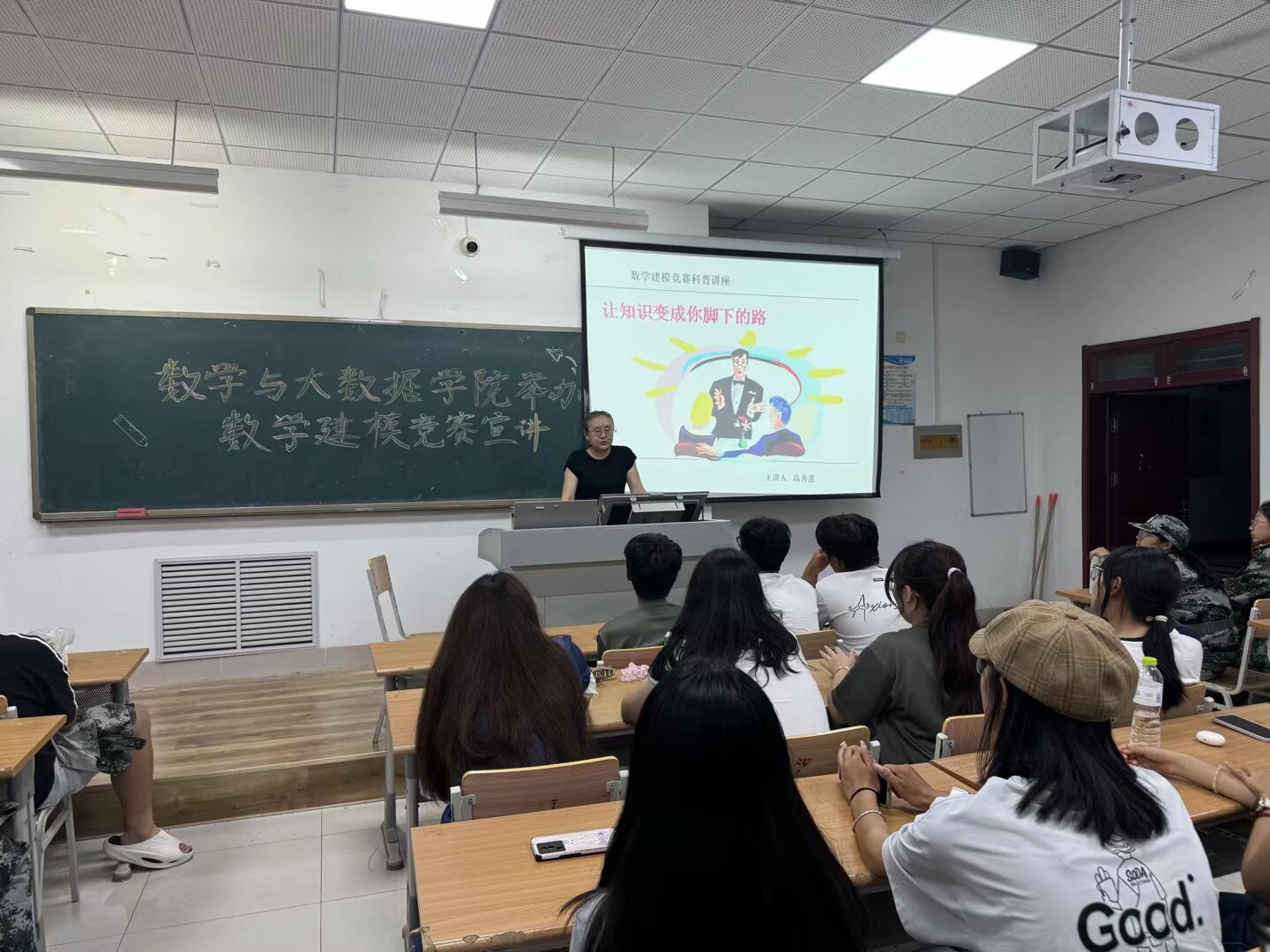 为响应学校2025年“迎新周”大学生科技文化竞赛工作部署,普及大学生科技文化竞赛和创新创业训练计划项目的管理办法,提升2025级新生对数学建模竞赛的认知与参与热情,数学与大数据学院于9月18日在明理楼0255教室开展专题讲座,本次讲座由高秀莲老师主讲,2025级全体新生参与。