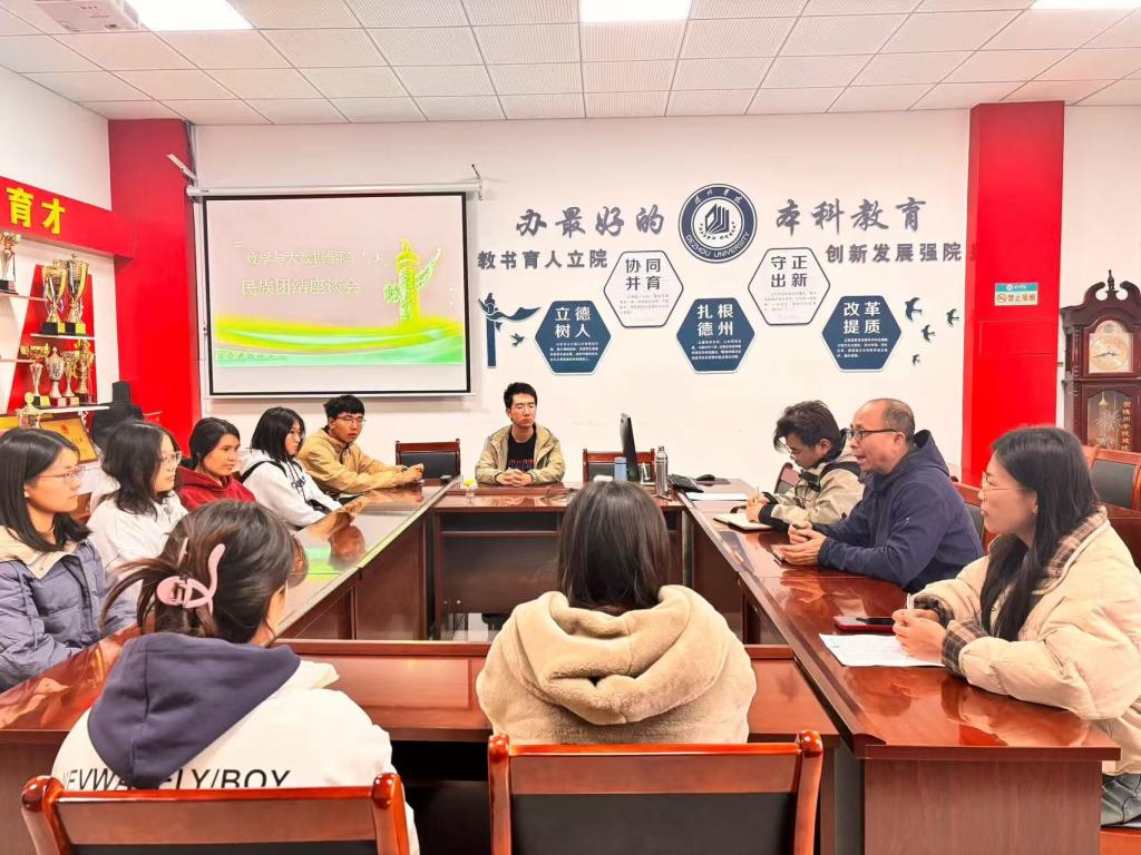 为了促进各民族学生间的交流,营造团结互助的校园氛围,宣传民族团结相关政策与知识,引导学生树立正确的民族观,凝聚校园向心力,数学与大数据学院于10月21日在明理楼466开展民族团结座谈会。学院党委书记赵华龙,辅导员王冰新、郭振将参加会议。