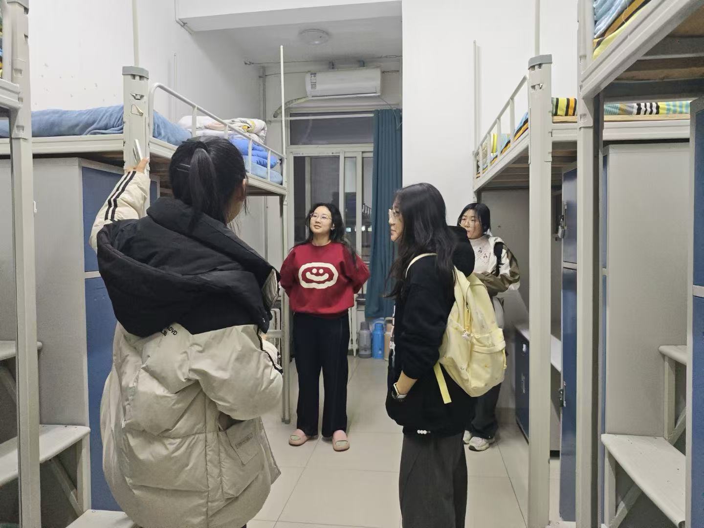 活动期间,学生会成员分成小组,逐宿舍开展“全覆盖、无死角”排查,不仅细致检查电路插座、电器使用等安全隐患问题,还就宿舍内务整理、物品摆放、通风消毒等情况进行指导。此次活动中,同学们展现出极强的集体协作意识,从分工清扫卫生到共同维持宿舍整洁,每一个环节都凝聚着宿舍成员的默契与用心。