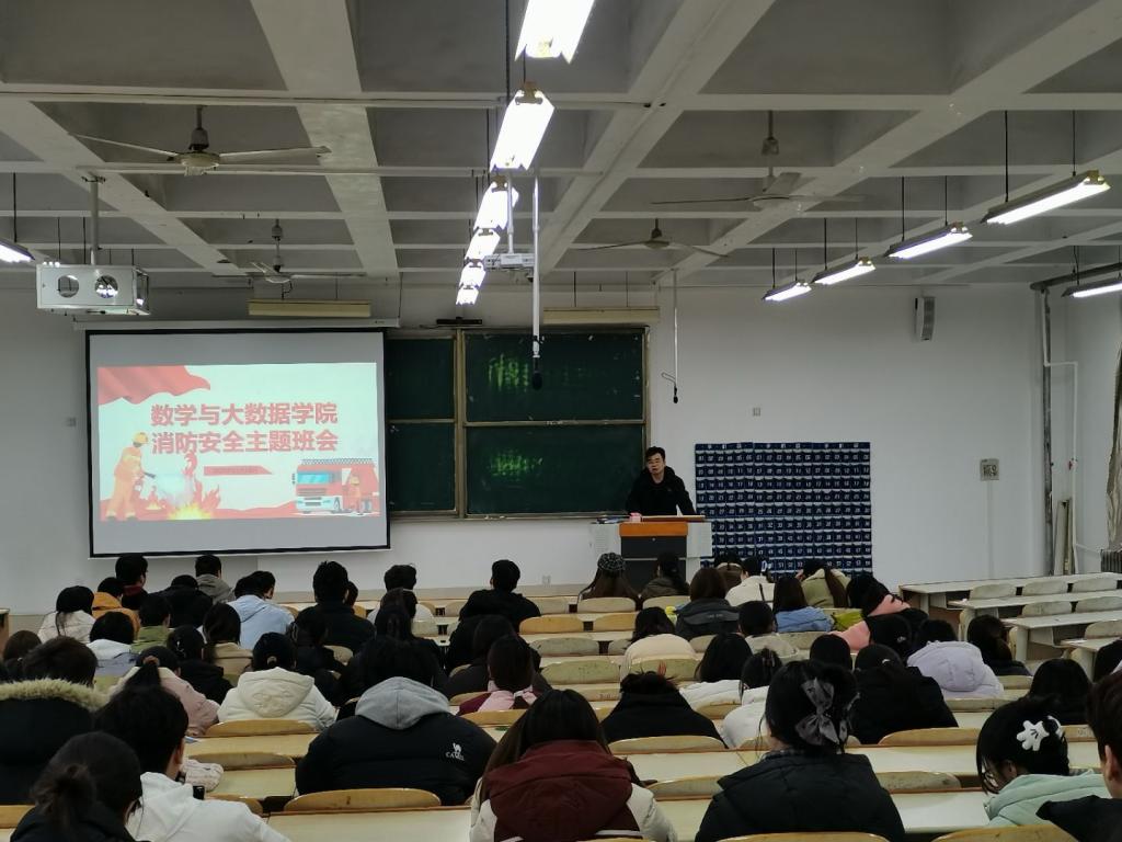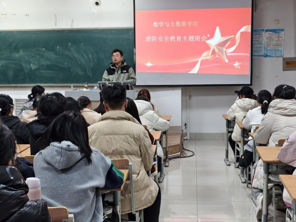 为强化学生的安全意识,掌握实用避险的技能,筑牢校园安全防线,营造安全稳定的校园环境,数学与大数据学院于11月16日在明理楼0255组织召开各年级消防安全教育主题班会。