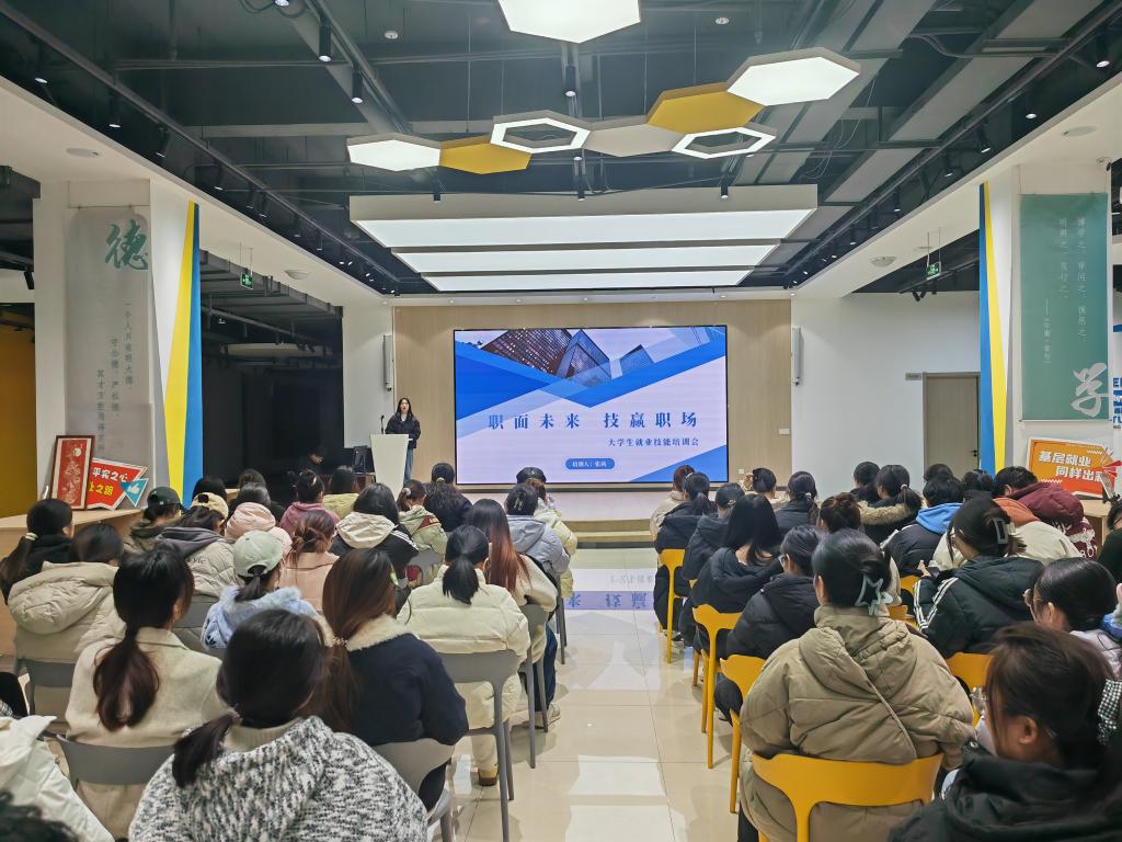 为切实提升大学生就业竞争能力,帮助学子掌握实用求职技巧,数学与大数据学院于11月18日在大学生就业创业赋能中心召开“职面未来,技赢职场”大学生就业技能培训会,本次培训会由张茜老师主讲。