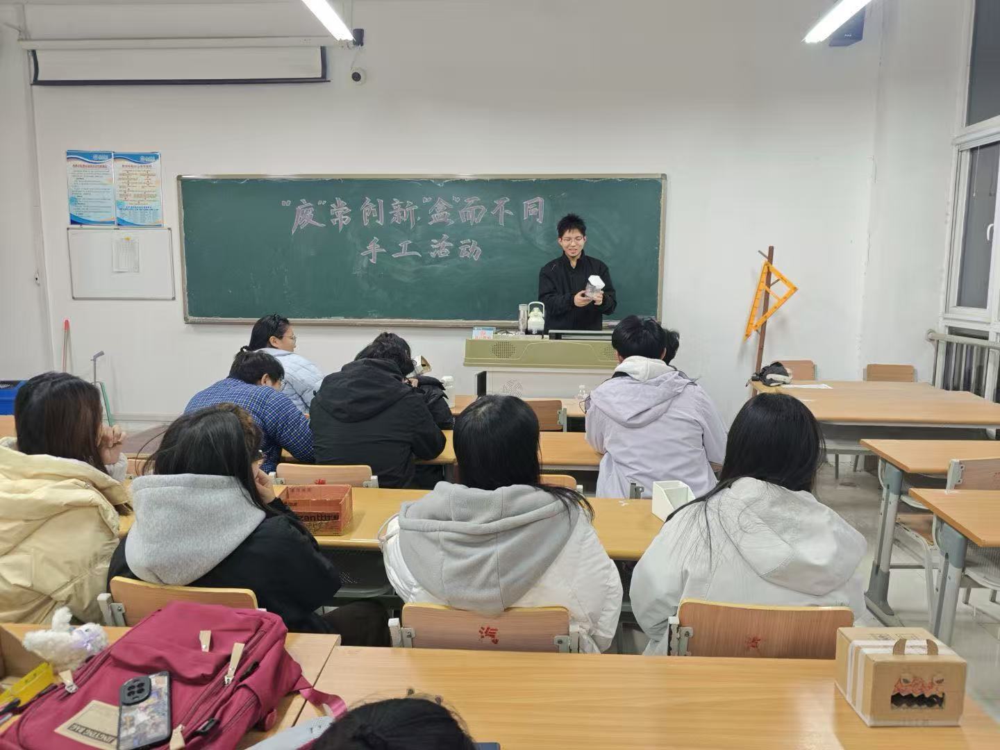 为响应“双碳”目标号召,传播可持续发展理念,激发同学们的创新思维,数学与大数据学院于11月16日在明理楼0250举办“‘废’常创新,‘盒’而不同”变废为宝手工活动。