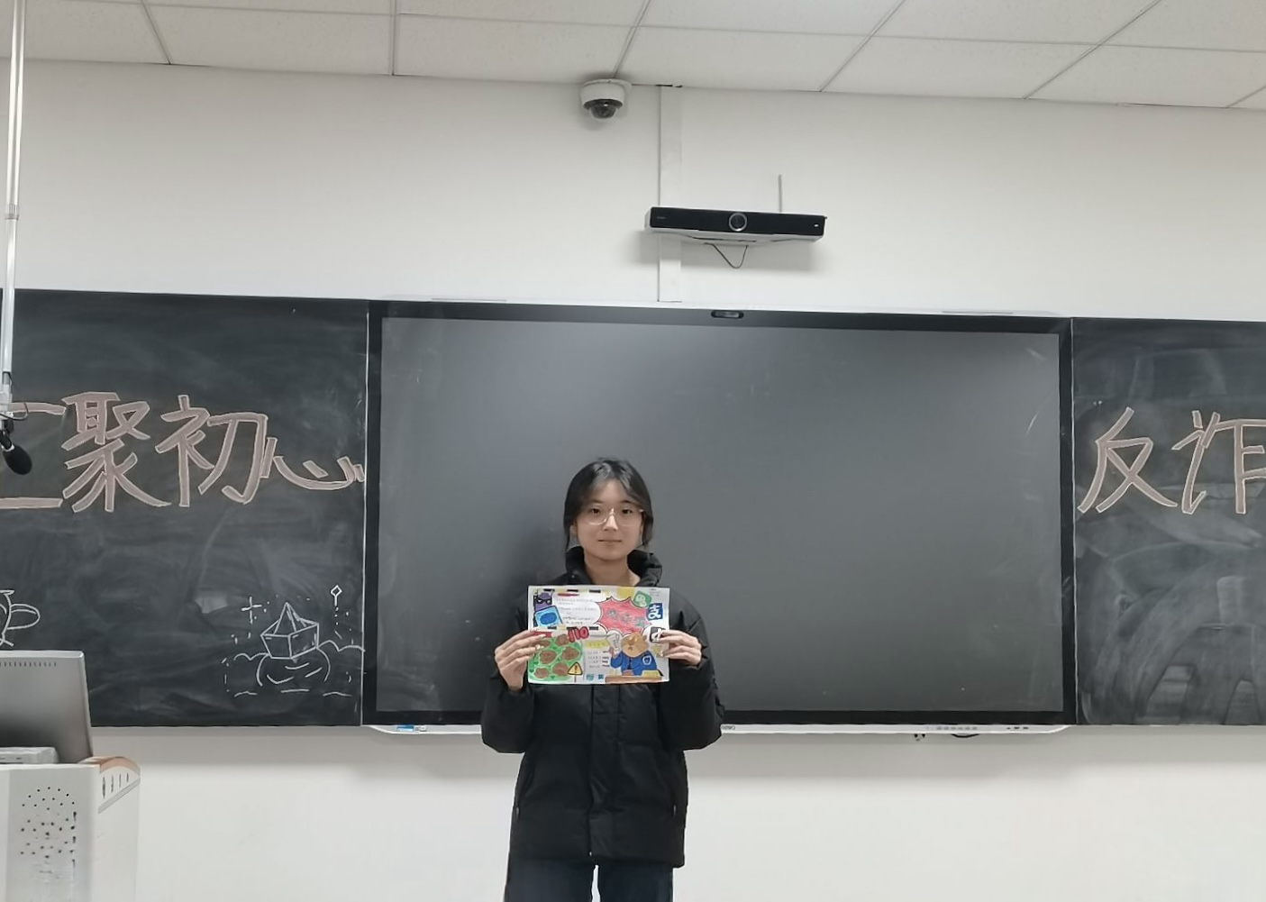 活动伊始,主持人以校园诈骗案例为引,梳理了常见的诈骗类型,用贴近学生日常的实例直观呈现诈骗风险,并总结出了防骗三原则。随后,学生们依次展示手抄报作品并分享设计思路,手抄报作品丰富多彩,图文并茂的形式让生硬的反诈知识变得直观易懂,使同学们更深刻的了解了反诈知识,增强了反诈意识。