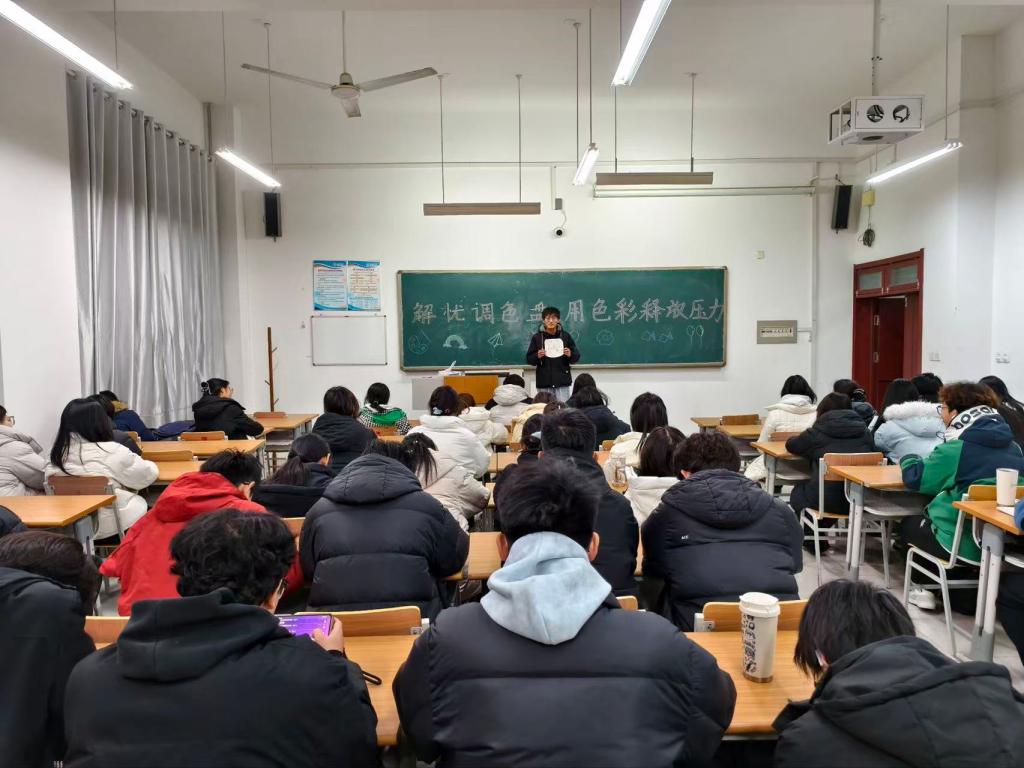 为缓解学生学业生活压力,捕捉生活中的温暖瞬间,感知生活暖意,疏解情绪压力,数学与大数据学院于11月23日在求真楼303开展“解忧调色盘,用色彩释放压力”心理健康主题活动。