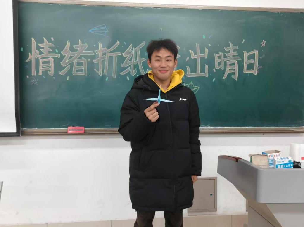 活动以“零门槛,强疗愈”的折纸为载体,将手工创作与情绪表达相结合。学生们用彩纸折出千纸鹤、小船、星星等造型,搭配能量满满的短句和表情图案,把抽象的情绪转化为具象的作品。从构思造型到完成创作,专注的动手过程让学生在轻松操作中自然转移焦虑、收获成就感。互动环节中,学生们分享着折纸里的情绪故事,现场氛围温馨和谐。