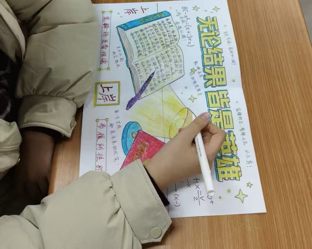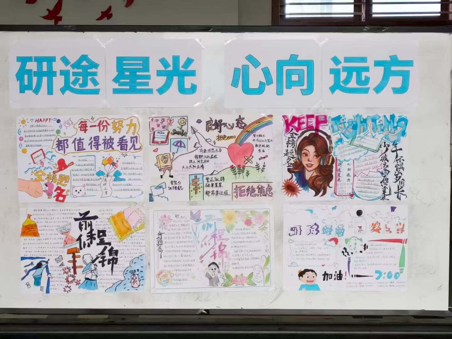 活动开展期间,学生以宿舍为单位参与手抄报创作,围绕压力与情绪宣泄调试方法、考前考后心理调适技巧等核心内容进行设计,并写下对考研学子的真挚祝福。同学们将对学长学姐的鼓励与期许凝于笔端,让一张张手抄报成为考研长夜里的微光。