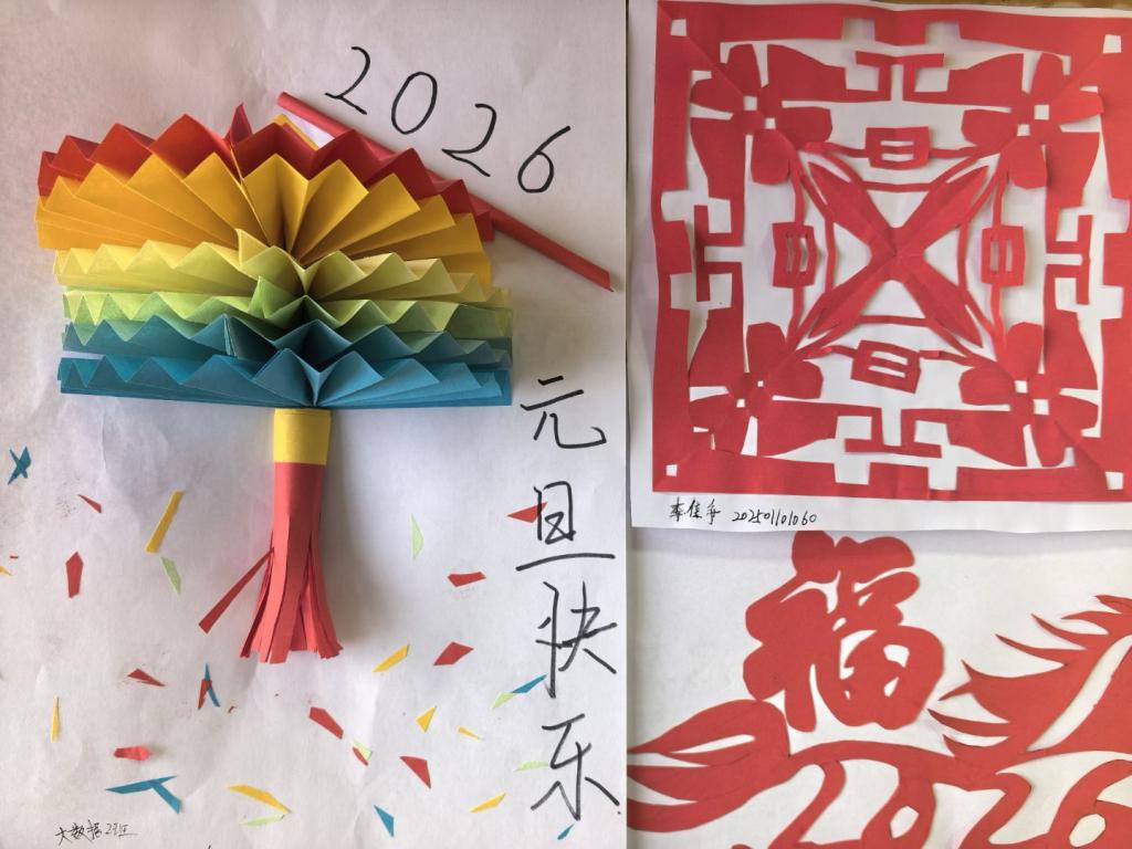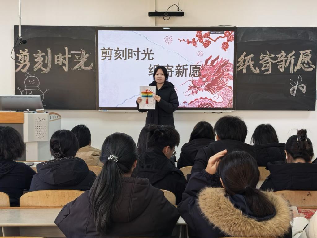 12月14日的“剪刻时光,纸寄新愿——元旦”剪纸创作活动中,同学们以剪刀为笔、红纸为媒,创作出蕴含吉祥寓意的新年剪纸,在指尖流转中体验非遗魅力,增强了文化认同感与动手实践能力。