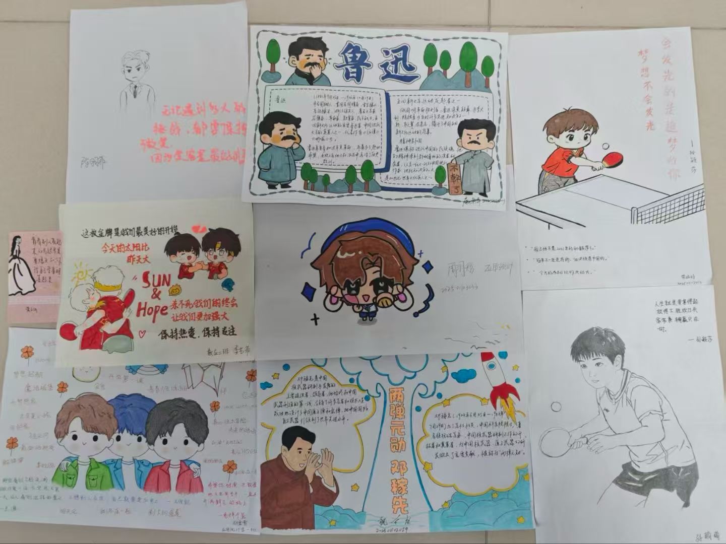 活动期间,现场氛围轻松而热烈,参与者们手持画笔、彩纸等工具,全身心投入创作。有人勾勒出榜样的经典形象,有人写下榜样激励自己的名言,将榜样带来的精神力量融入笔尖与画纸。在作品交换环节,同学们主动分享自己的创作灵感与榜样带来的成长感悟,互相交流从榜样身上获得的克服困难的动力,现场洋溢着温暖的正向能量。