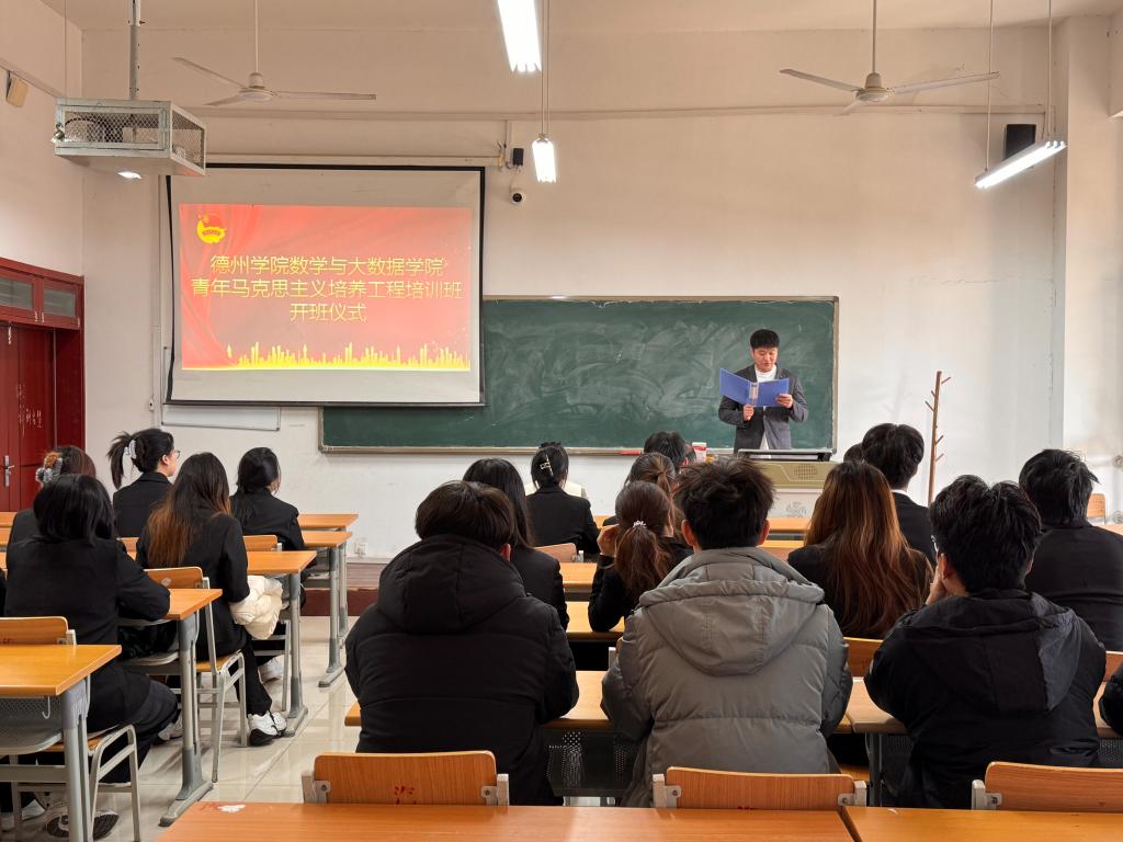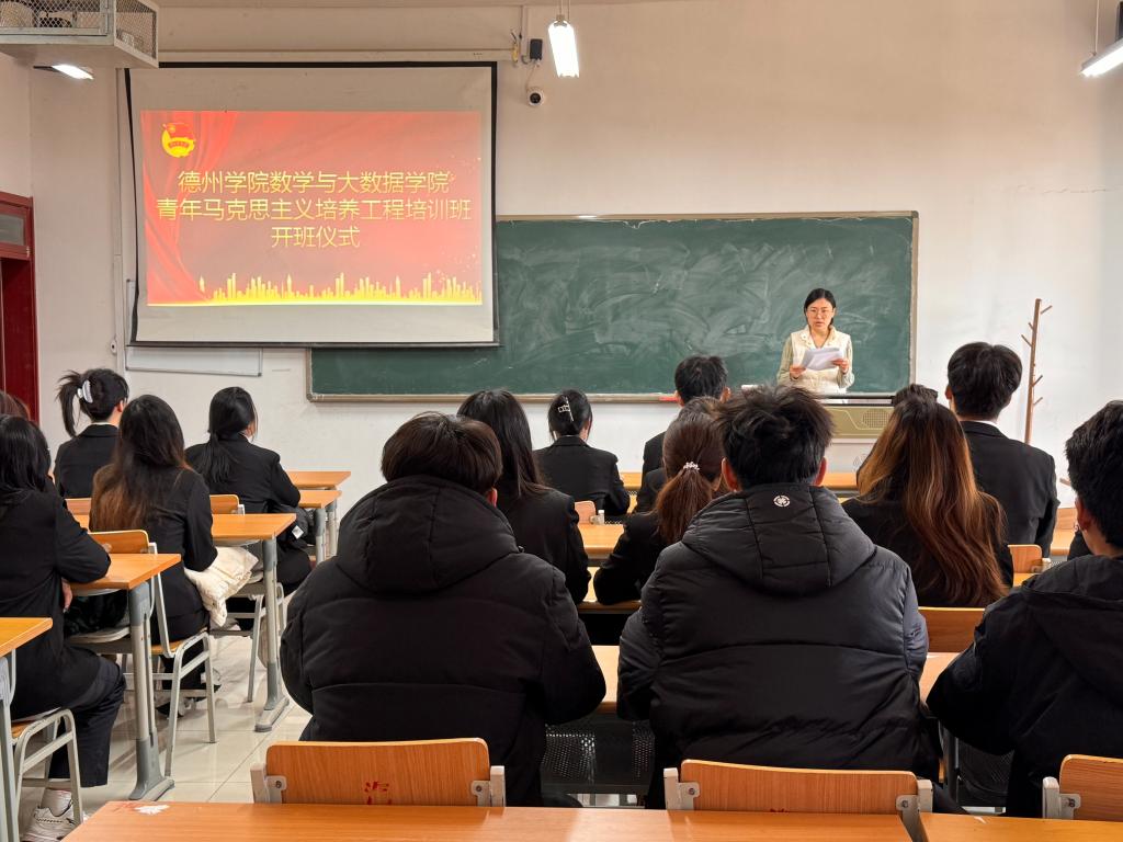 为深入学习贯彻习近平新时代中国特色社会主义思想,落实立德树人的根本任务,培养具备坚定理想信念的马克思主义者,数学与大数据学院于12月8日于明理楼0250举办青年马克思主义培养工程培训班开班仪式。学院党委书记赵华龙,辅导员王冰新、郭振将以及青马工程培训班全体学员出席此次开班仪式。
