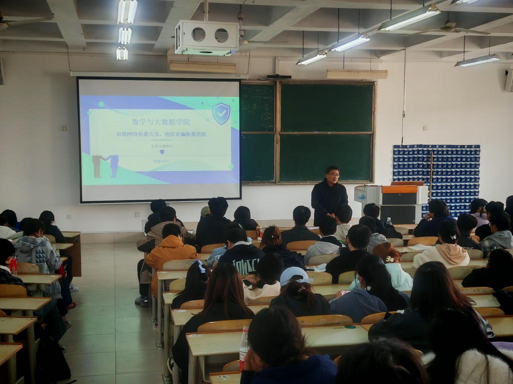 为进一步增强学生的反诈防骗意识,提升自我保护能力,有效预防和减少校园诈骗案件的发生,数学与大数据学院于3月31日在明理楼0255教室开展反诈主题班会。